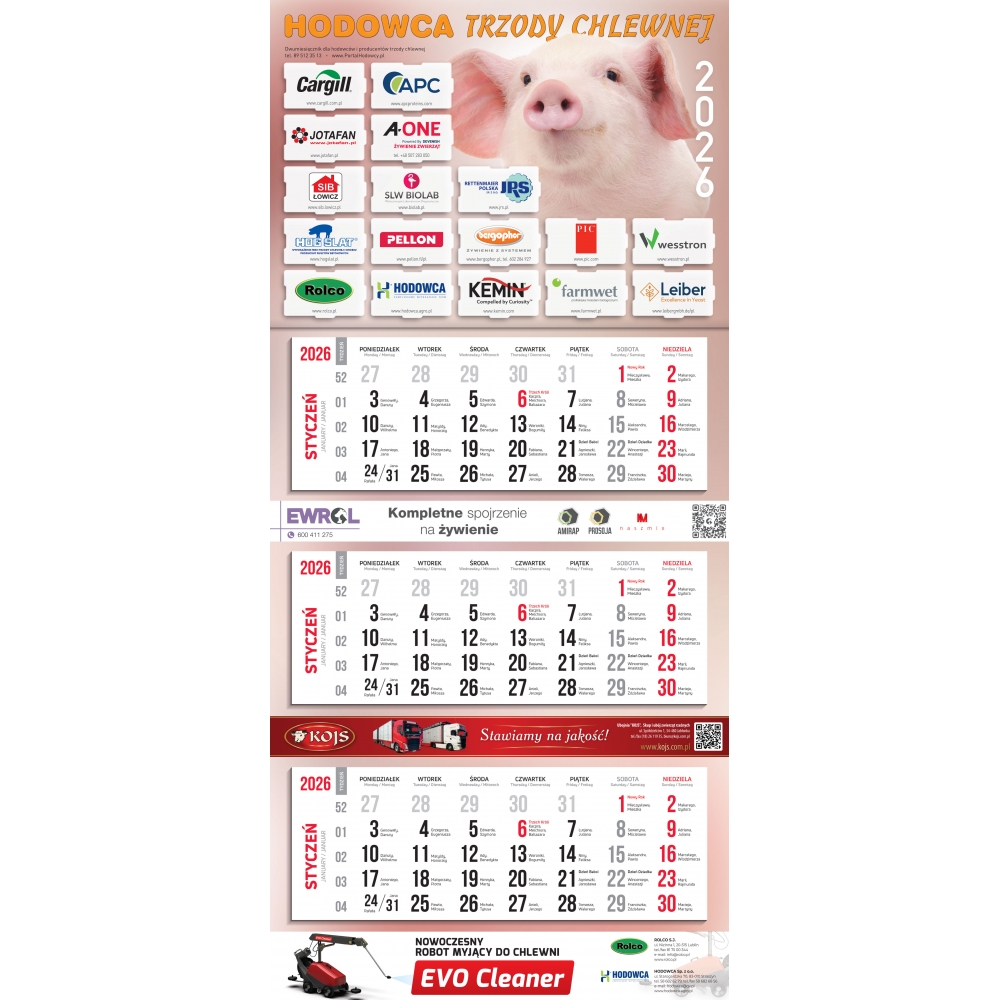 To kalendarz tematyczny na 2026 rok stworzony z myślą o miłośnikach trzody chlewnej. Jest praktycznym narzędziem do planowania, umożliwiającym lepsze zarządzanie czasem i zasobami związanymi z hodowlą.