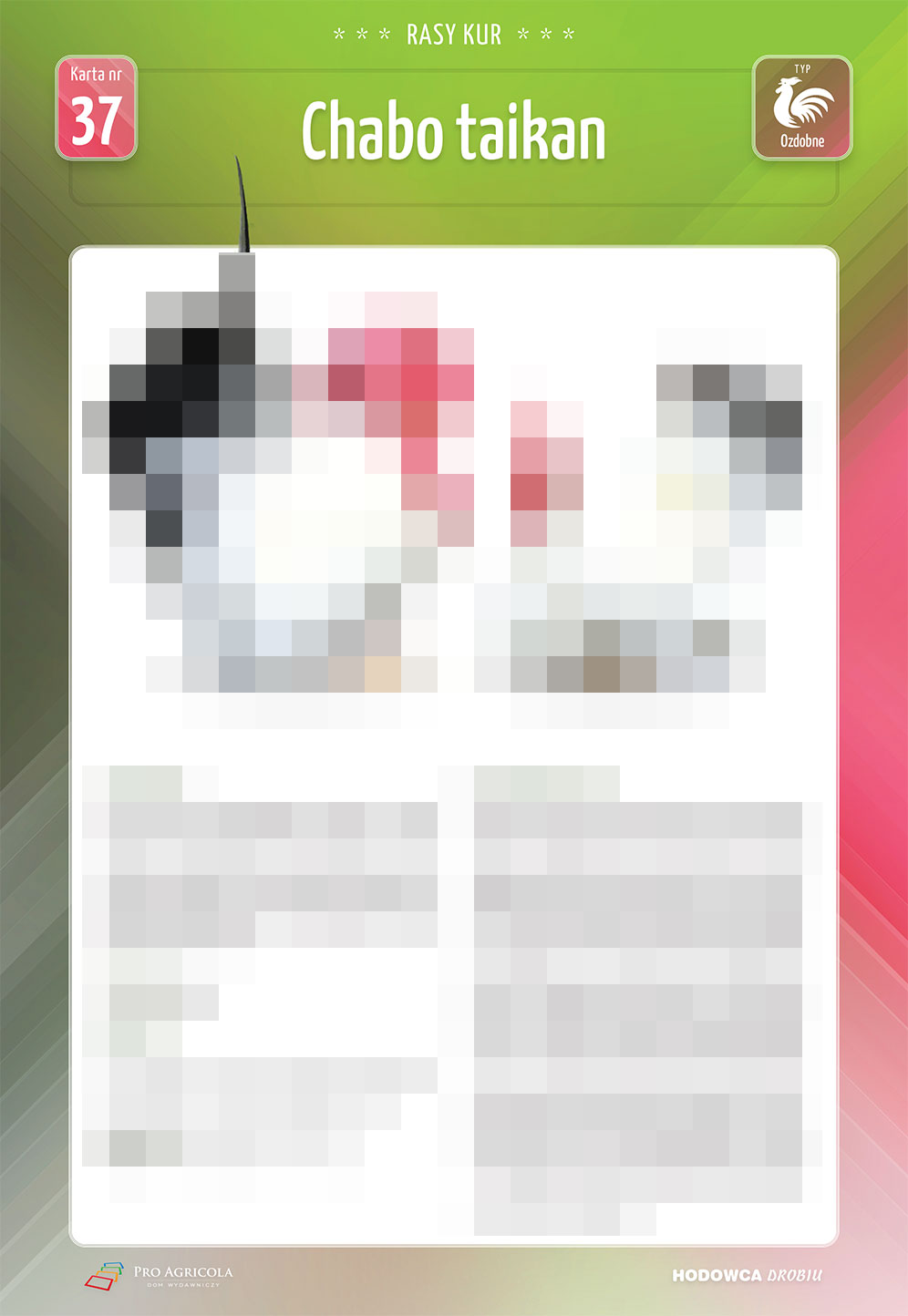 Chabo – nr 33To cykl ponad 60 kart opisujących po kolei najbardziej popularne rasy kur. Opisujemy ..